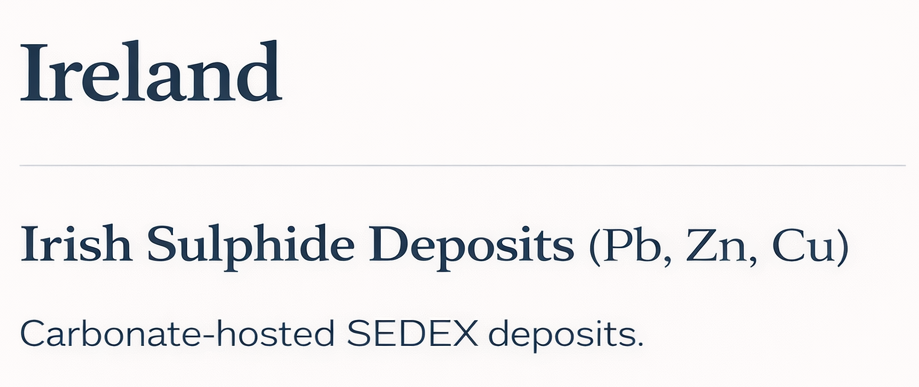 Irish Sulphide Deposits (Pb, Zn, Cu)