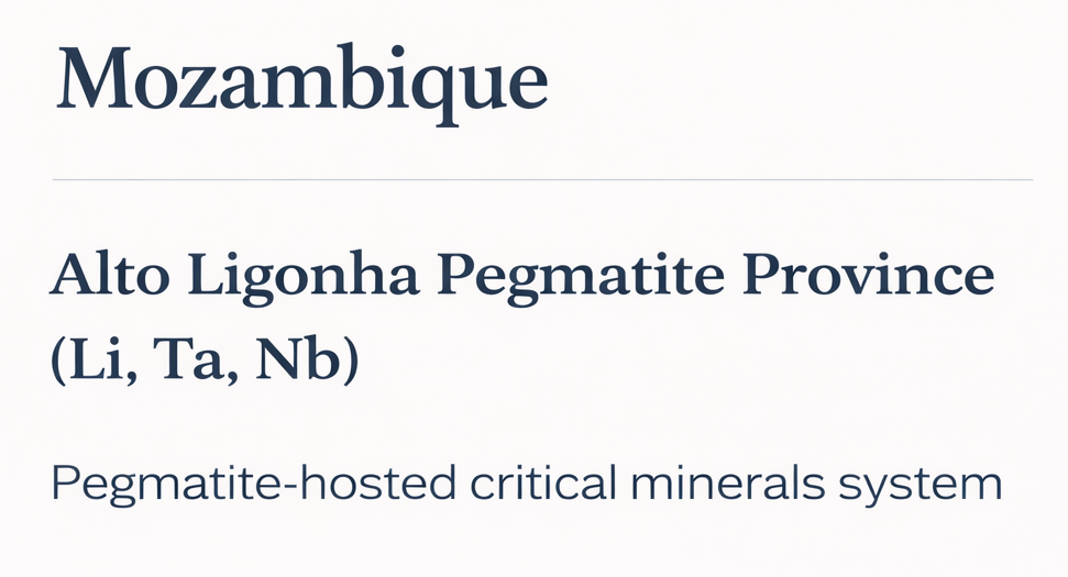 Alto Ligonha Pegmatite Province (Li, Ta, Nb)